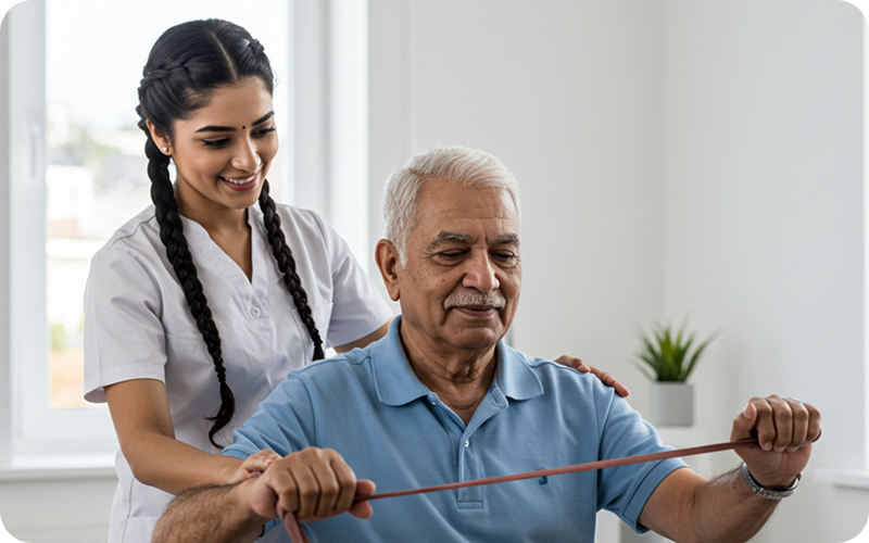Care Ever Health Care Services offers personalized physiotherapy sessions at home to support recovery from injuries, surgeries, neurological conditions, or chronic pain. Our licensed physiotherapists design structured treatment plans that help you regain movement, reduce discomfort, and return to daily activities — all in the comfort of your home.
